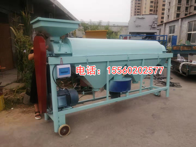 【產品簡介】水稻除芒機,是一種專門用于對帶芒水稻種子及其它帶芒刺種子進行芒、刺處理的機具。適用于種子加工成套設備的配套使用。 結構特點  該機主要由:機殼、傳動軸、打桿、活門調節裝置、驅動裝置等部件組成。采用旋轉打桿及其配合的內襯耐磨板,對種子表面施加搓擠、打擊作用,以除去芒、刺毛、松散的穎片及未脫凈的穗頭、莢殼等。通過清除芒、刺,改善了種子的表面,有利于種子加工的下道工序的作業。